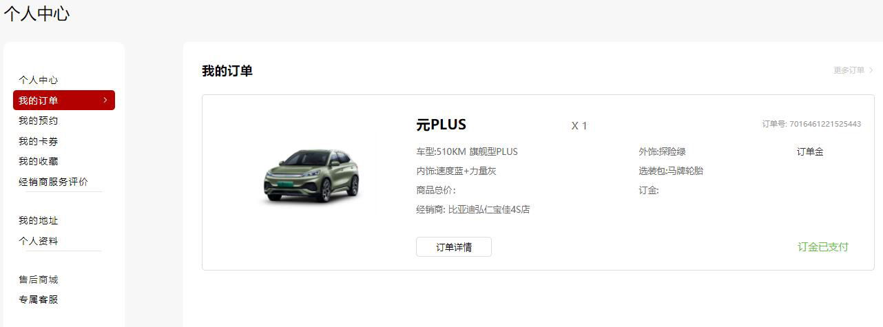 在订单确认页输入联系人信息(姓名、手机号码、证件类型、证件号),可在经销商栏选择意向经销商,确认信息后请详细阅读订购须后点击结算,扫码支付完成结算。