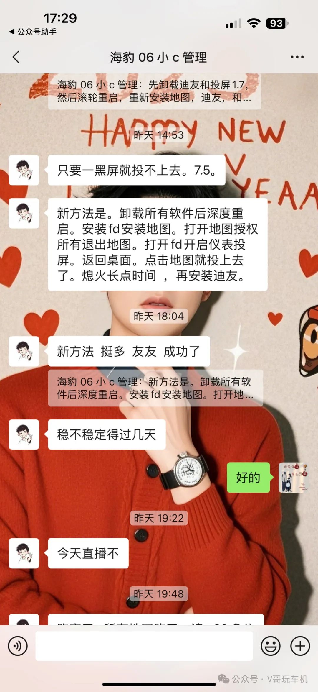 身后总有一群爱折腾的车友一直陪伴,分享个黑屏,无法投屏的办法。来自车友海豹 06 小 c,也是我所有群的管理员,折腾车机第一名。