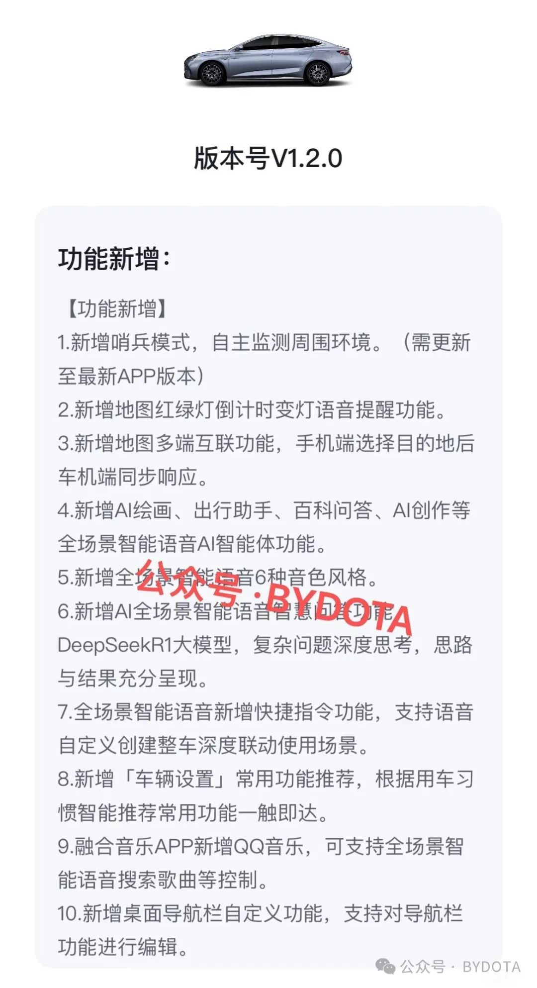 24款海豹07 DM-i获推1.2.0 OTA!新增哨兵模式、红绿灯变灯语音等10项功能